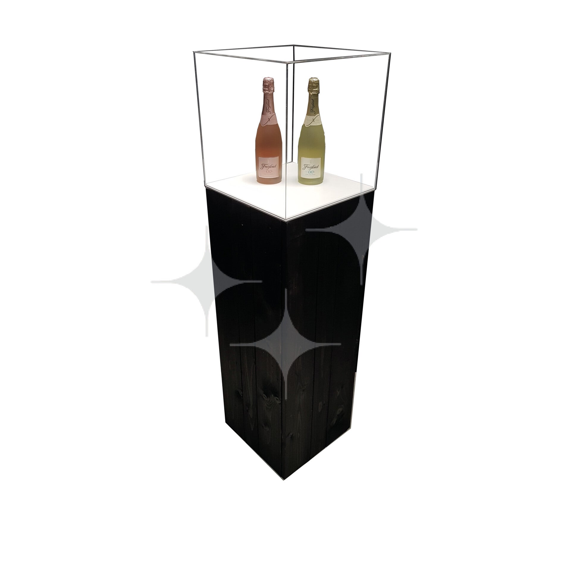 Sokkel met transparante kap (40x40x40cm) en witte bodemplaat.