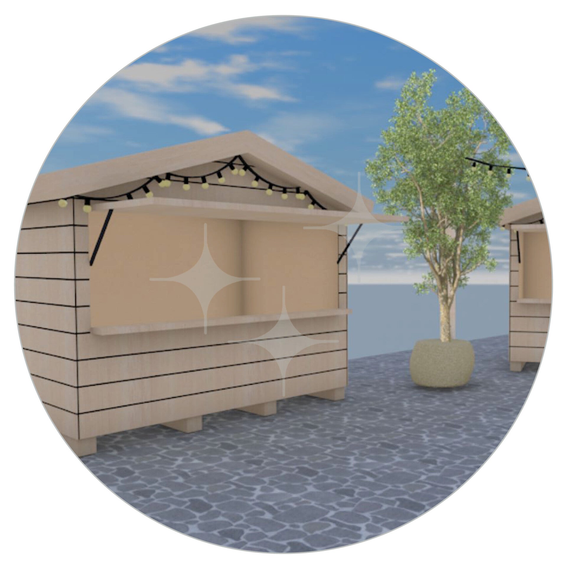 Ter inspiratie: Zomerdorp met houten chalets, decoratie en verlichting.