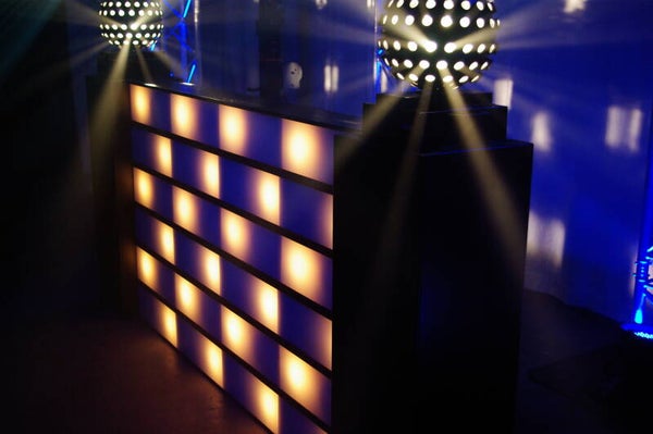 Breng de dansvloer tot leven met onze DJ booth voorzien van lichtblokken, die zorgen voor een opwindend disco-effect. Deze booth creëert een dynamische en energieke sfeer, ideaal voor feesten en evenementen waar de dansvloer centraal staat.