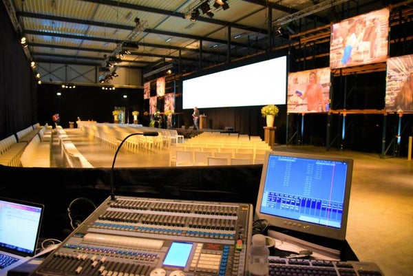 Backdrops kunnen worden gebruikt om de akoestiekin de zaal te verbeteren of om de locatie te verkleinen of op te delen in kleinere ruimtes.