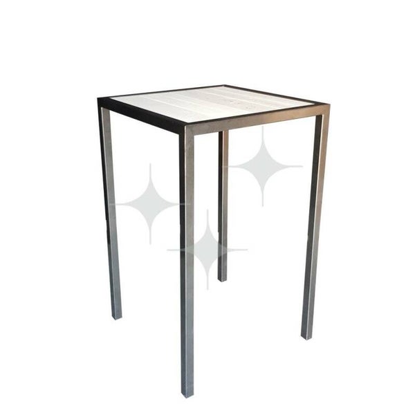 Statafel 72x72 stalen frame met wit rustiek houten inleg excl. krukken