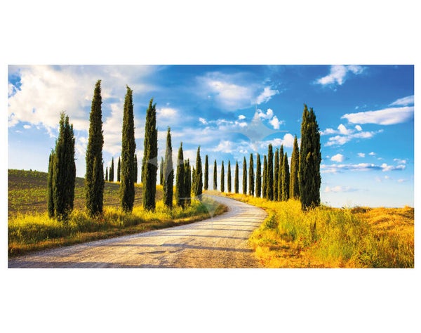 Foto (landschap) geprint op doek 8x4 mtr (BxH), cipressen, laantje, weg, pad, italie