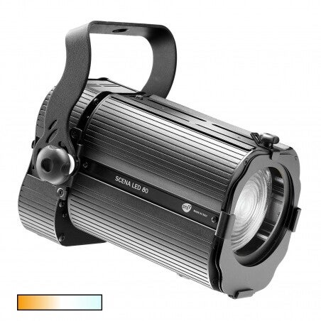 LED Theaterschijnwerper met regelbare kleurtemperatuur. Met powercon in- en uit. DMX aansluiting en display voor instellen van diverse functies. Geschikt voor kleine podia, kerken, beurzen, presentaties, showrooms, etc